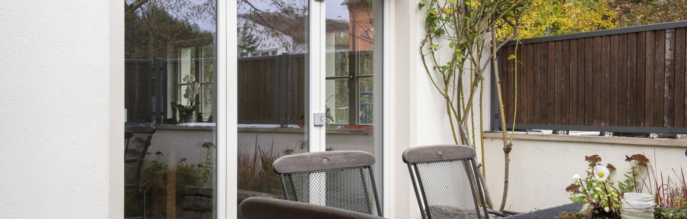 Unsere Falt-Schiebe-Türen, das sind bis zu fünf Glasfelder, die geöffnet kompakt in der Ecke des Raumes verschwinden. Das Ergebnis: innen und außen werden eins.